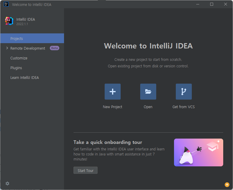 일단 인텔리제이를 처음 실행하면 아래와 같을것이다.