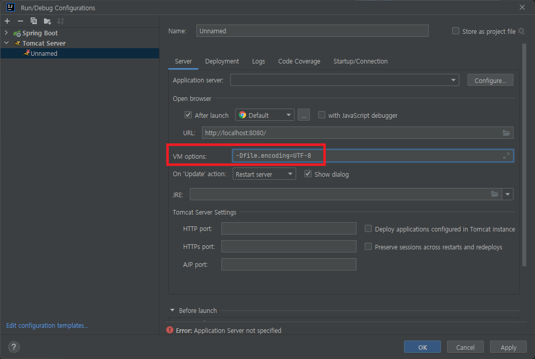 [VM options]에 아래의 내용을 추가해주자.