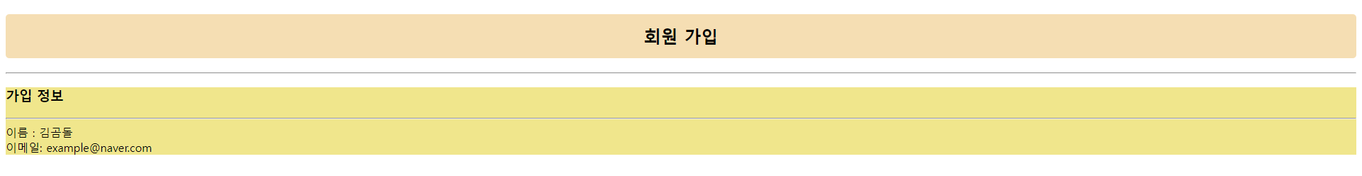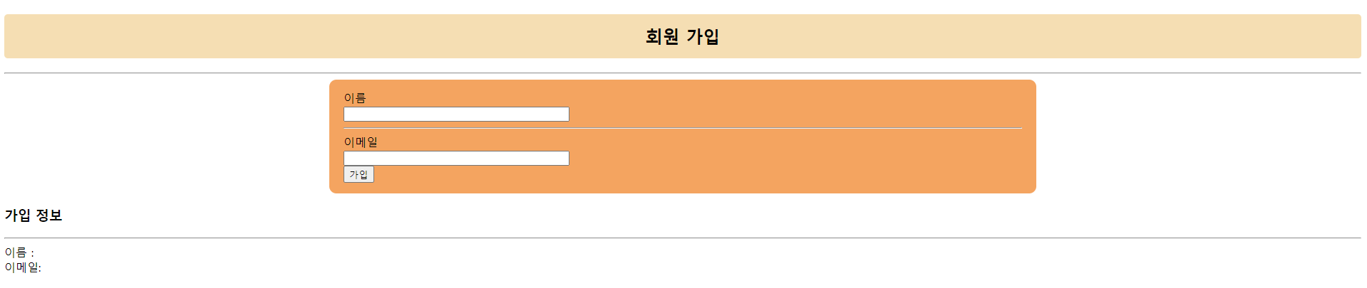 위에서 형태를 완성했으니 이제 가입 버튼을 클릭하면 새로운 박스에 내용을 출력하도록 할것이다.