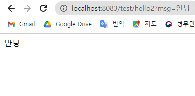 다음으로 http://localhost:8083/test/hello2?msg=안녕 한번 접속해보자.